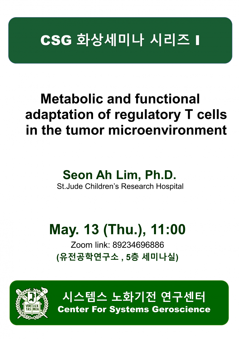 연사 : Seon Ah Lim, Ph.D. (St.Jude Children’s Research Hospital)