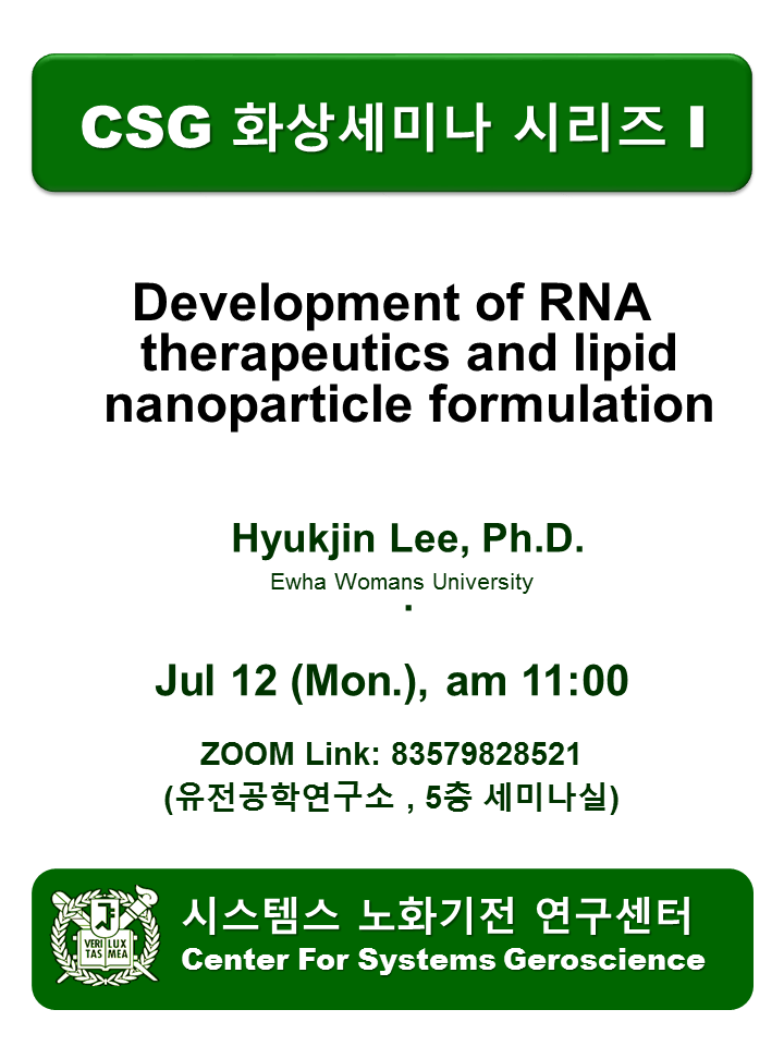 주제 : Development of RNA therapeutics and lipid nanoparticle formulation