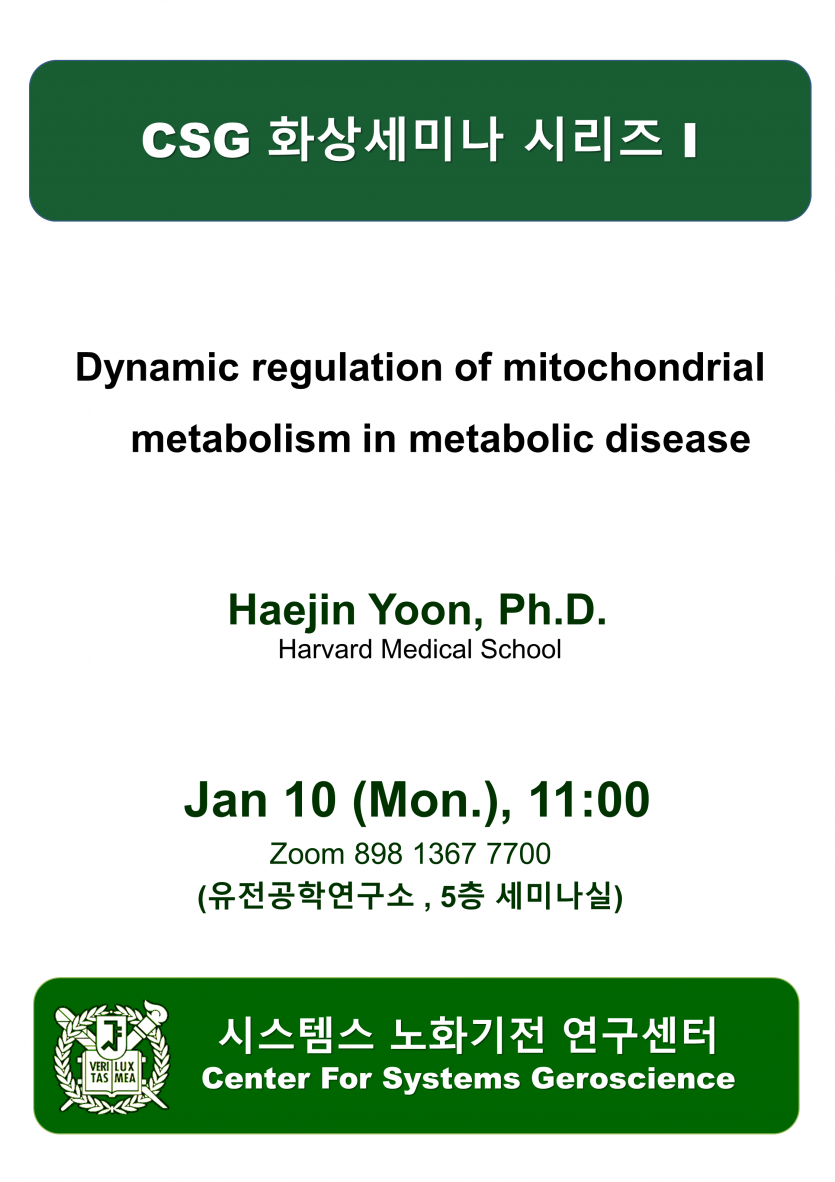 주제 : Dynamic regulation of mitochondrial metabolism in metabolic disease