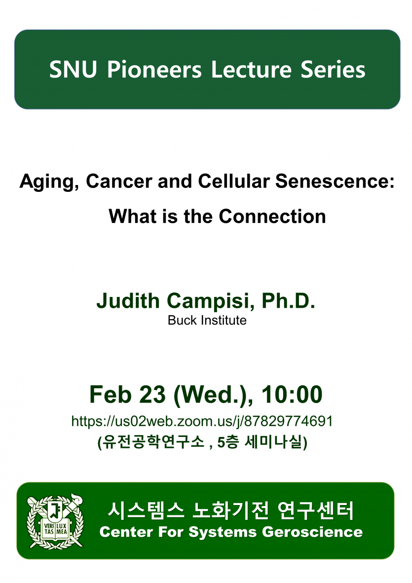 연사 : Judith Campisi, Ph.D. (Buck Institute)